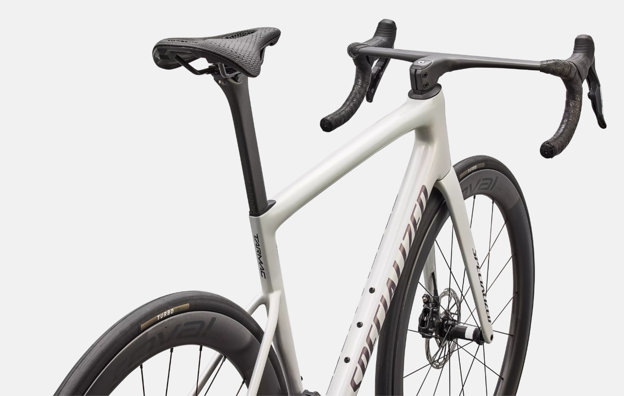 - FRUKTANSVÄRT SNABB, FANTASTISKT BEKVÄM: Med enorma framsteg i förhållandet styvhet-till-vikt – en förbättring med 33 % jämfört med SL7 – tar Tarmac SL8 legendarisk styrning, aggressiv responsivitet och VM-beprövad geometri till nästa nivå. Cykeln är styvare i pedalerna och har större precision i styrningen, kombinerat med en följsamhet i sadeln som sätter en ny standard för racercykelkomfort. Vårt tillvägagångssätt Rider-First Engineering gör att alla cyklister oavsett storlek får samma oöverträffade egenskaper och hanterbarhet. Tarmac SL8 är 6 % mer följsam i sadeln och rör sig över ojämna vägar med en mjuk känsla som är helt unik i racercyklarnas styva värld. Tarmacs välbeprövade geometri och däckfrigång på 32 mm är desamma som på SL7. De gör cykeln mångsidig och öppnar för att köra på bredare däck när det behövs.