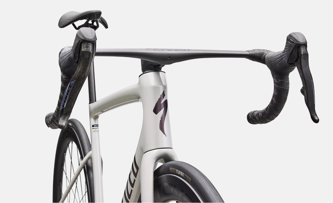 - AERO I ALLT: Vi gör det aero där det räknas, inte bara där det ser bra ut. Det är så vi har skapat vår mest aerodynamiska landsvägscykel någonsin. Ja, den är mer aerodynamisk än Venge. Ren luft optimeras till maximal fördel med hjälp av Tarmacs nya noskon – Speed Sniffer. Genom att flytta bak styrröret – det rör som avgör bredden på styrhuvudet – har vi kunnat ge styrhuvudet en mycket skarpare framkant som minskar luftmotståndet markant. Allt enligt de nya UCI-reglerna har Tarmac SL8 den smalaste, mest aerodynamiska sadelstolpen någonsin, så att den turbulenta luften runt benen lättare kan strömma bakåt. Känner du doften av seger?