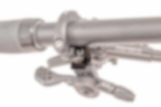 This neatly CNC-machined piece of black anodized and laser engraved 6061-T6 Aluminum attaches all Triggys directly to a Shimano I-Spec II brake and saves an extra clamp on the handlebars.