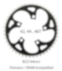 Kompatibel med Shimano/SRAM 5-bult 94 mm där stora klingan har en tapp utgående vid vevarmen. Insidan har CNC-frästa släntade spår för snabb effektiv upp och nedväxling samtidigt som detta förstärker klingan i sidled.