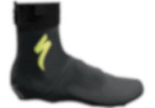 Comfortable elasticized shoe cover with rear zipper.