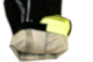 | > | Neon yellow shoe covers and reflective elements |